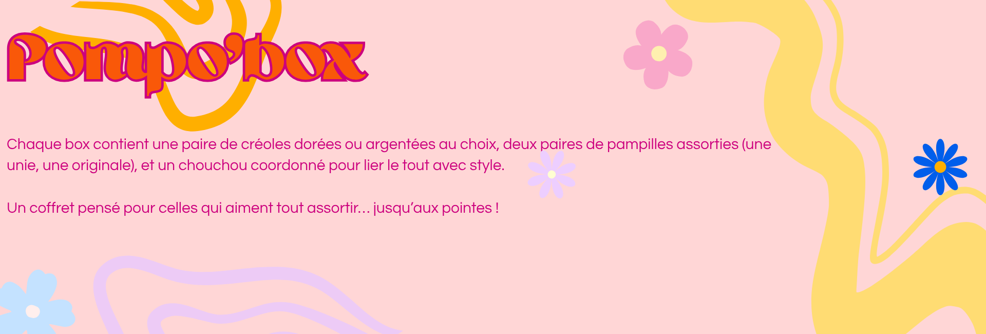 Accueil Nouveautés Saint-Valentin Octobre rose Collection automne/hiver Boutique Pampilles Puces d’oreilles Créoles Collier Box pomponette Demande personnalisée Mon compte Panier Conditions Générales de Vente MENTIONS LEGALES Hamburger Toggle Menu Choix des options Box pomponette Pompo’boxNote 0 sur 5 22,00 € Choix des options Ce produit a plusieurs variations. Les options peuvent être choisies sur la page du produit